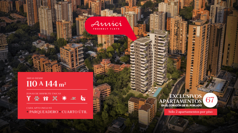 AMICI, un proyecto de apartamentos para los que prefieren disfrutar lo mejor de la ciudad. ¡Ubicado en el corazón de El Poblado!